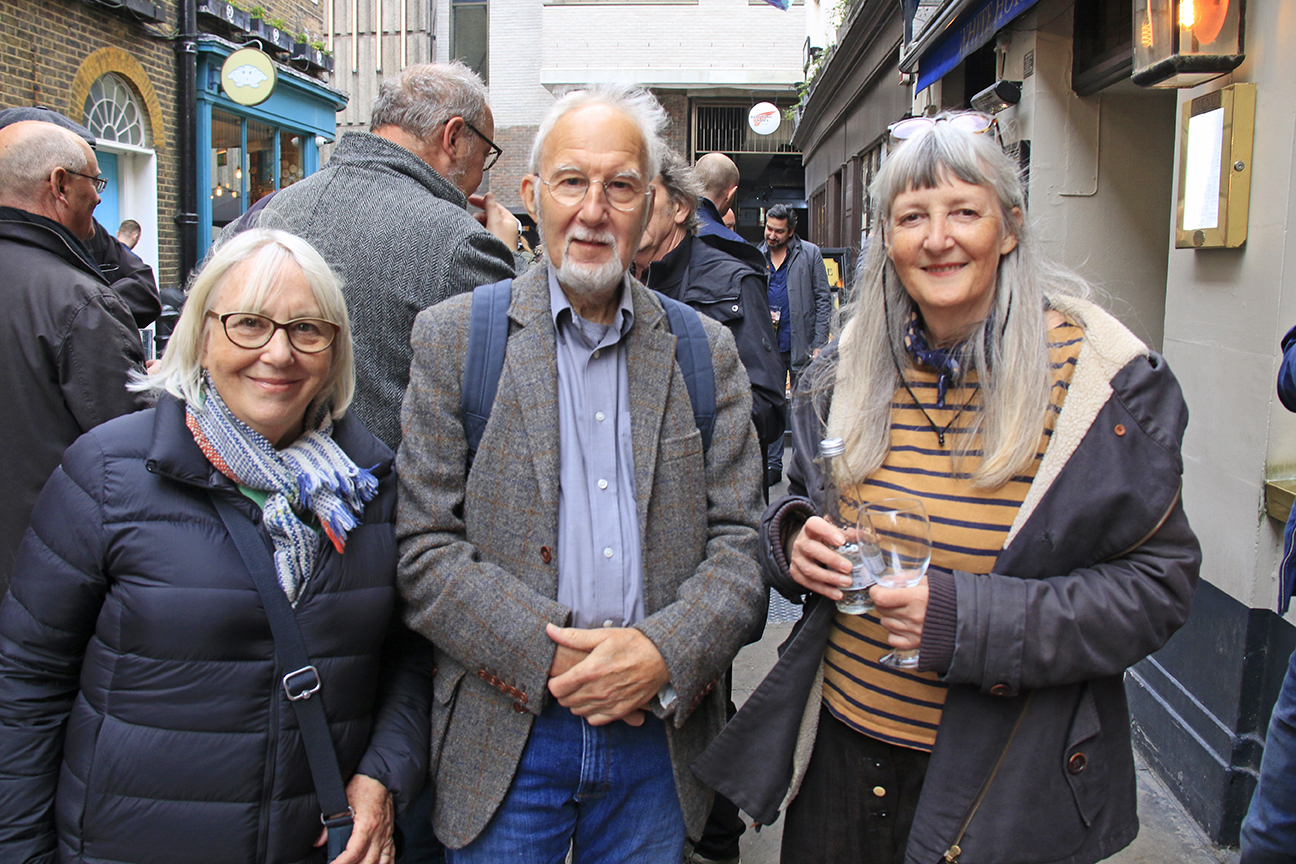 Catrin & Dave Unwin & Gill Bradley attending an animation gathering. The White Horse, Newburgh Street. Soho, London, UK, 28 October 2021 photo by Richard Keith Wolff