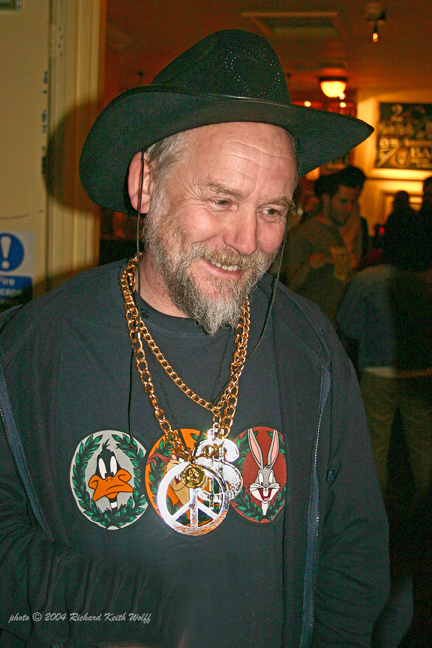 Dave Webster, animator, artist and Saxophonist, at the Pub. Soho, London, UK, 21 May 2004. photo by Richard Keith Wolff