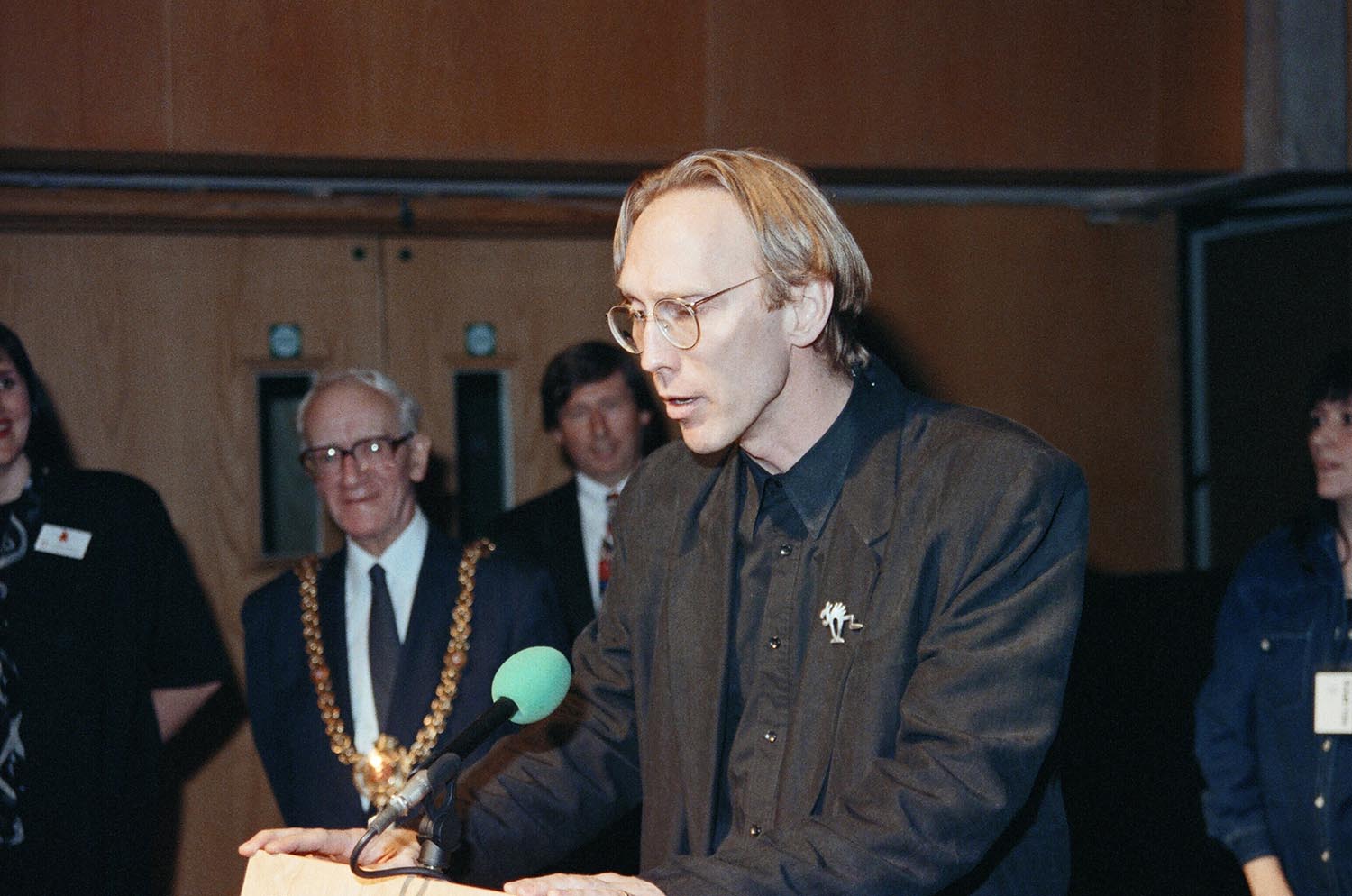 Henry Selick is addressing dignitaries from the Cardiff institutions. Henry Selick, America stop-motion animation film director, attending Cardiff Int Animation Festival 94 Cardiff, to present the premier of his film “The Nightmare Before Christmas”. Cardiff, Wales, UK, May 1994 photo by Richard Keith Wolff