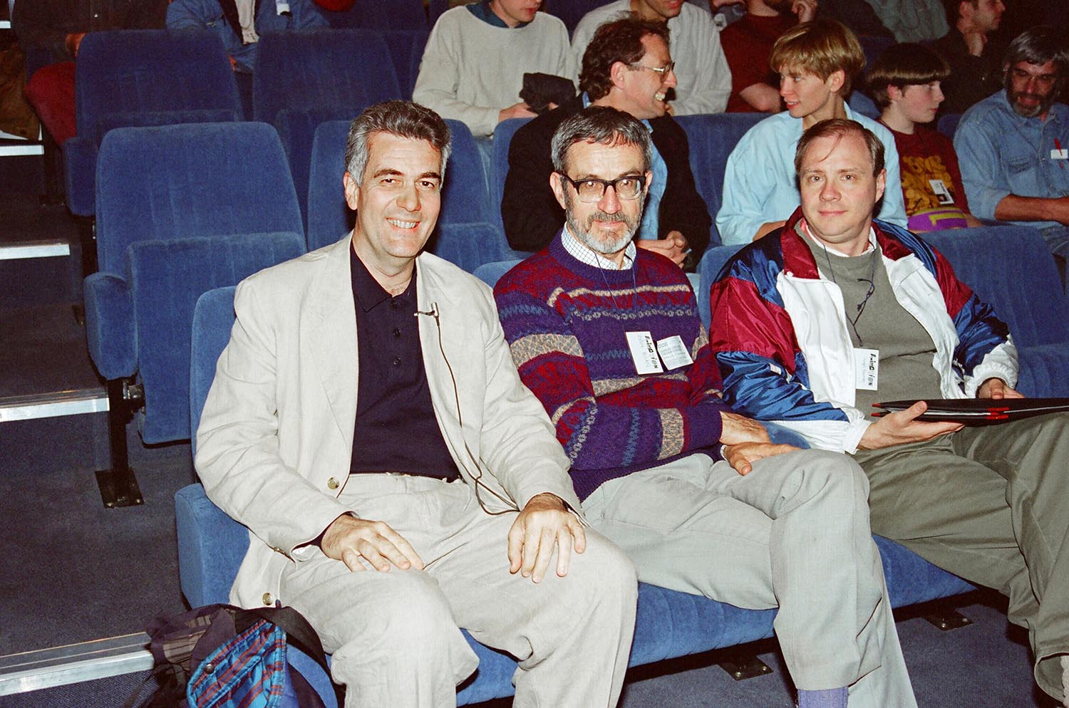 Max Howard, Henry Selick, and Jules Engel (1909 – 2003) attending Cardiff International Animation Festival 94. Cardiff, Wales, UK, May 1994 photo by Richard Keith Wolff
