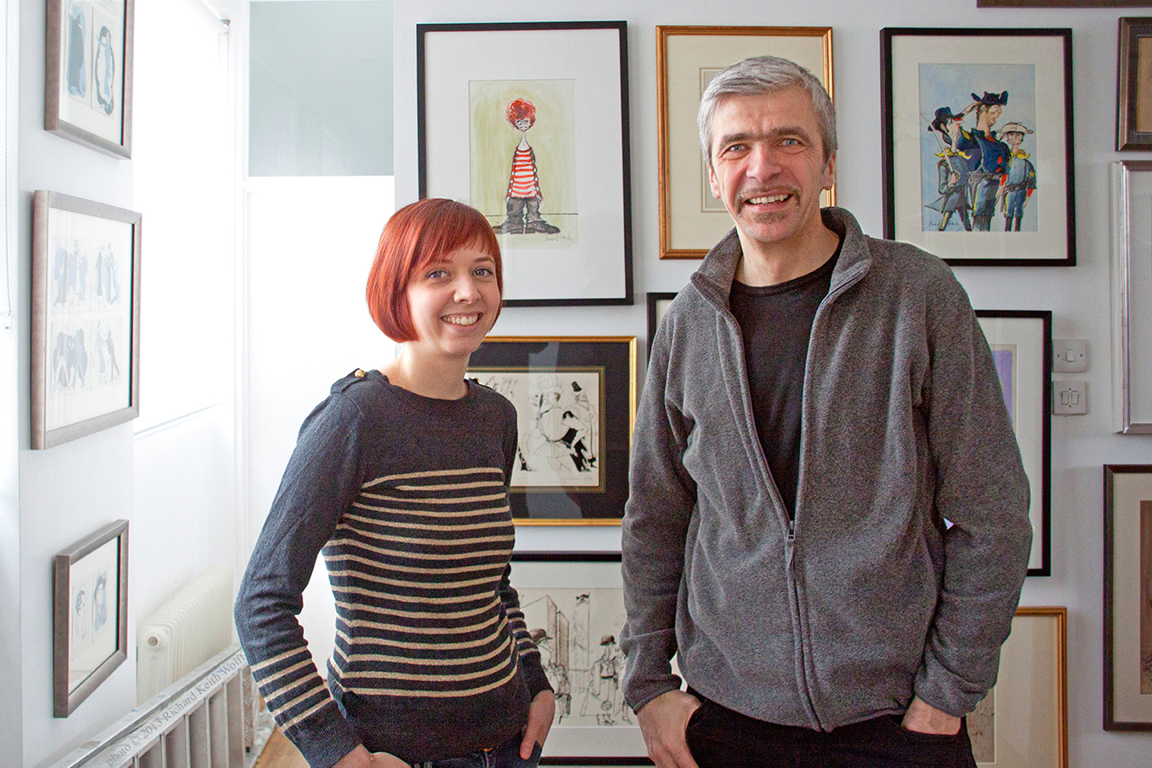 Lisa, and Uli Meyer cartoonist, illustrator, animator, author, filmmaker and cameraman, at home. Kentish Town, London, UK, 25 February 2013 photo by Richard Keith Wolff