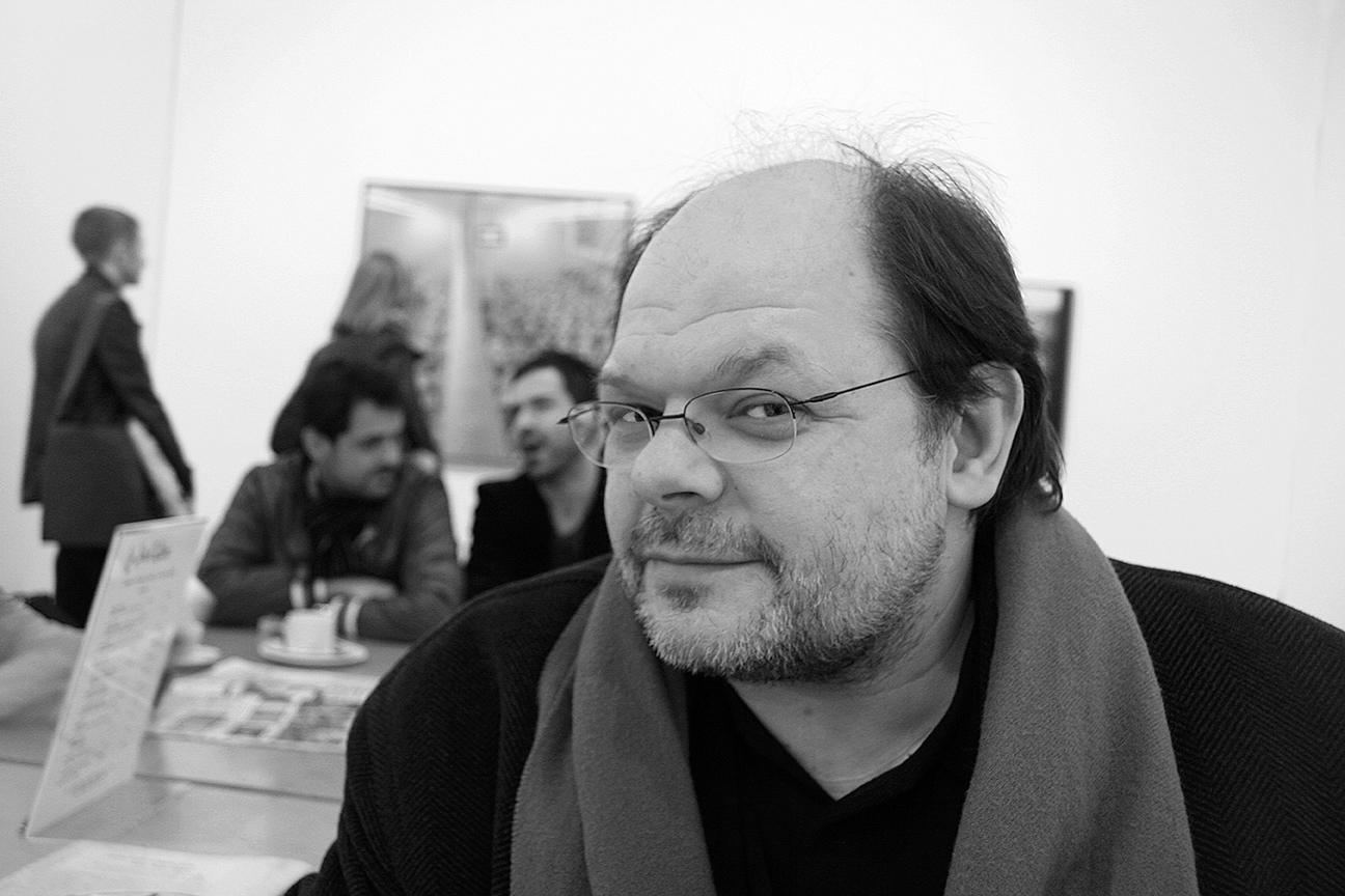 Mario Cavalli, animation film director and designer sitting in the original Photographers Gallery cafe. Soho, London, UK, 26 February 2006 photo by Richard Keith Wolff