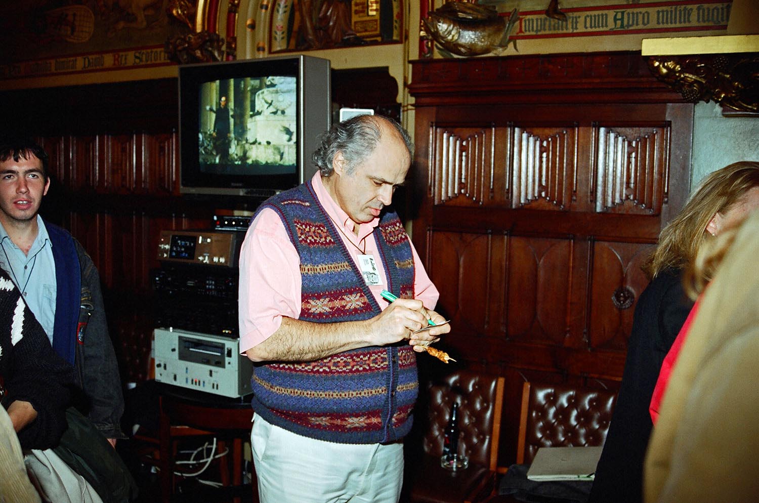 John Canemaker American animation historian, sitting next to Robin Allan from the BBC, attending Cardiff International Animation Festival 94. Cardiff, Wales, UK, May 1994 photo by Richard Keith Wolff