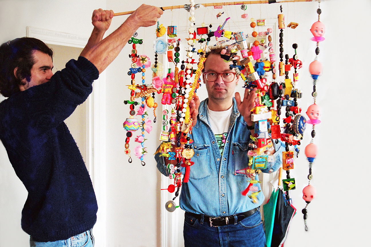 Pete Bishop and Jonathan Charles (L) with MTV design they are creating. Passion Pictures. London, UK, 28 September 1993. photo by Richard Keith Wolff.