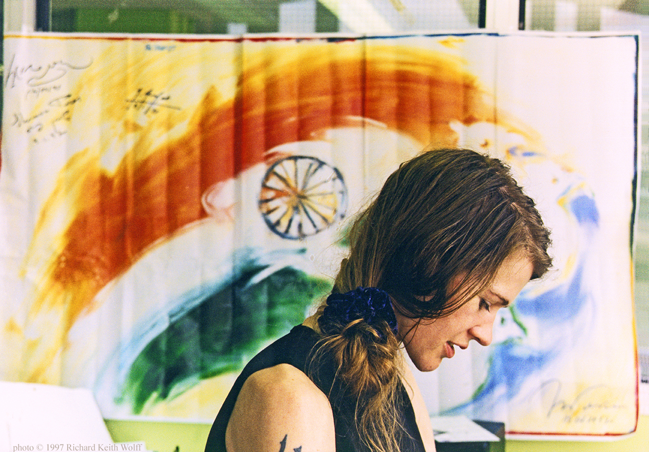 Emma Calder at Pearly Oyster Productions. Tower Hamlets, London, UK, 1 July 1993 photo by Richard Keith Wolff